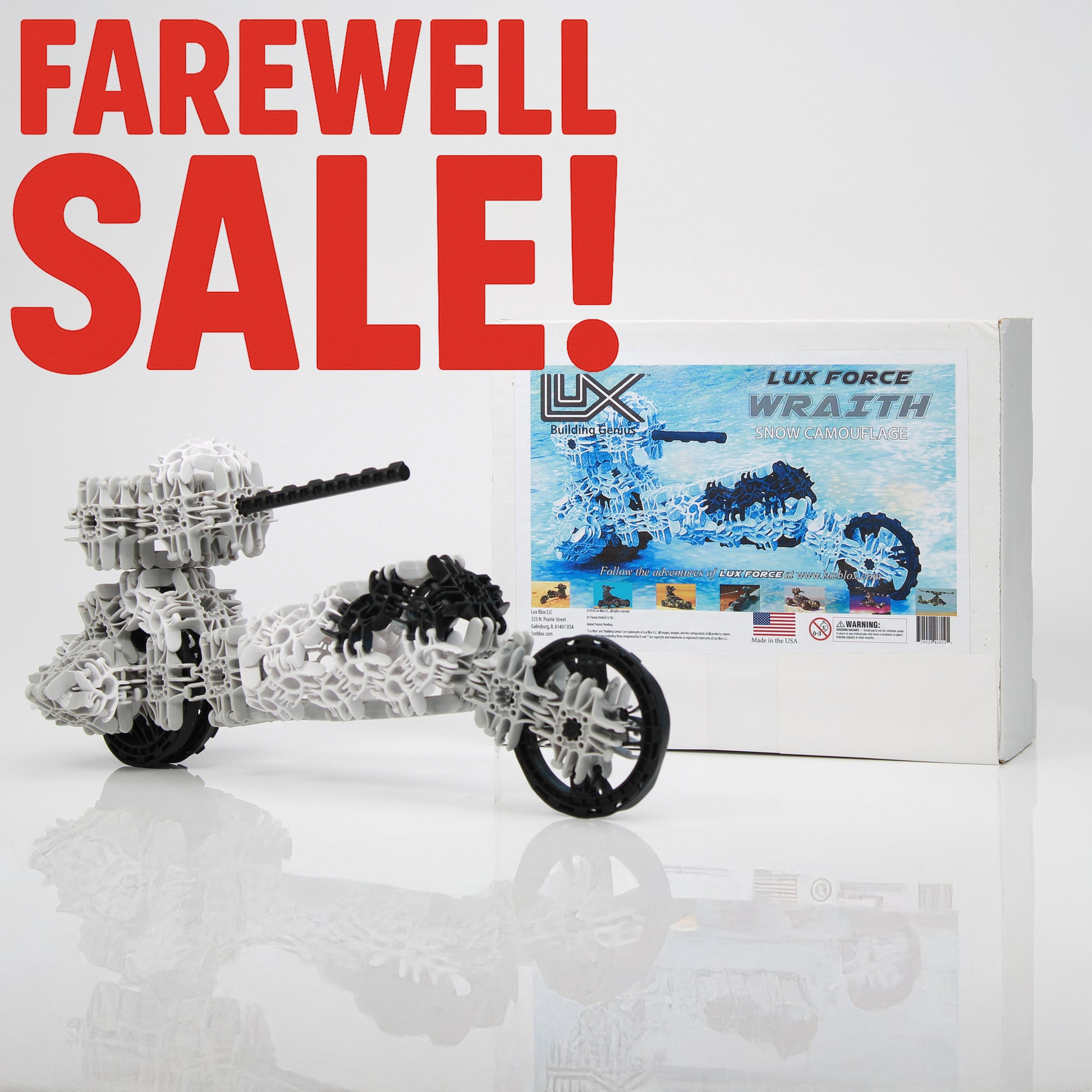 Lux Blox is manufactured in the United States and made of ABS (Acrylonitrile Butadiene Styrene) Plastic, a material commonly used in the manufacture of children’s toys like Lego bricks, and has been tested safe.